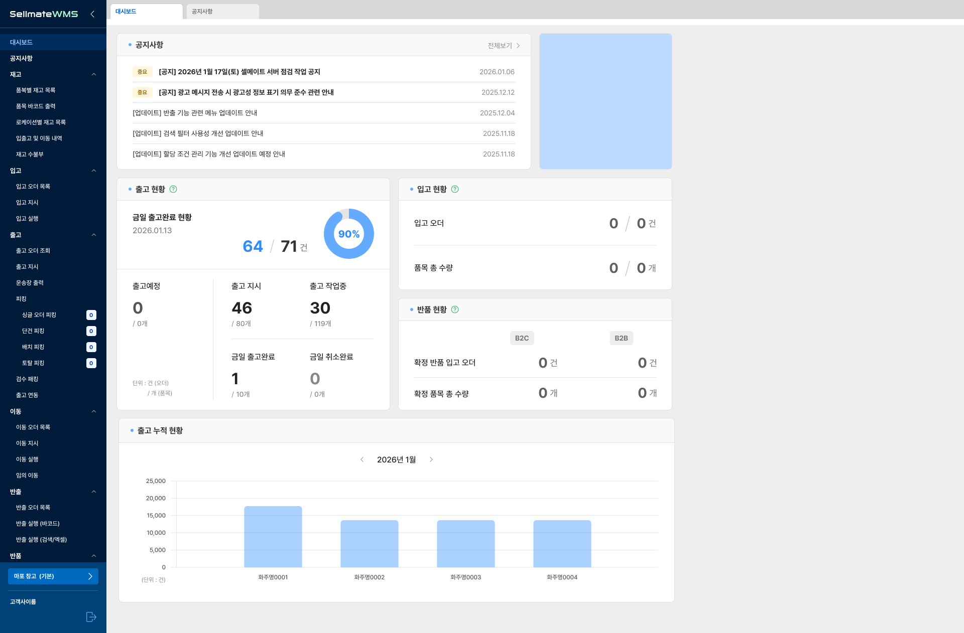 셀메이트와 같이 쓰면서 창고 안에서 물건을 받고, 쌓고, 꺼내고, 포장해서 보내는 모든 창고 업무를 관리해주는 프로그램이라고 보면 됩니다.